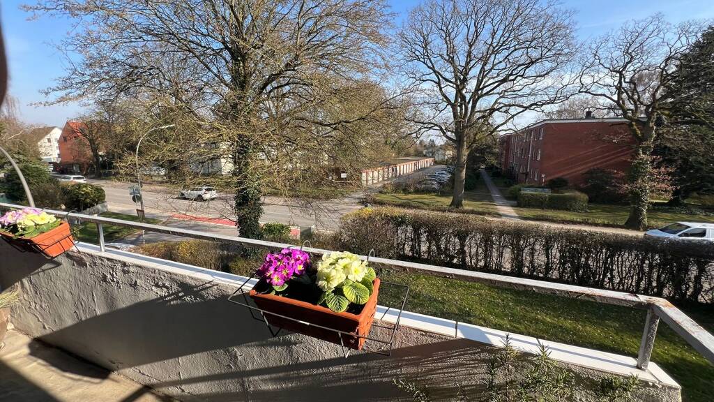 Die Wohnung liegt im 1. OG mit einem großzügigen Balkon und Blick ins Grüne.