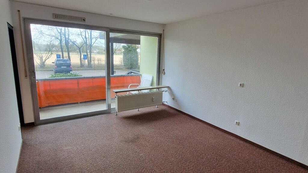 Das Einraumappartementi befindet sich im Hochparterre. Das Wohnzimmer ist nach Osten (Richtung Würding) zur Straße hin ausgerichtet und hat einen eigenen Balkon.