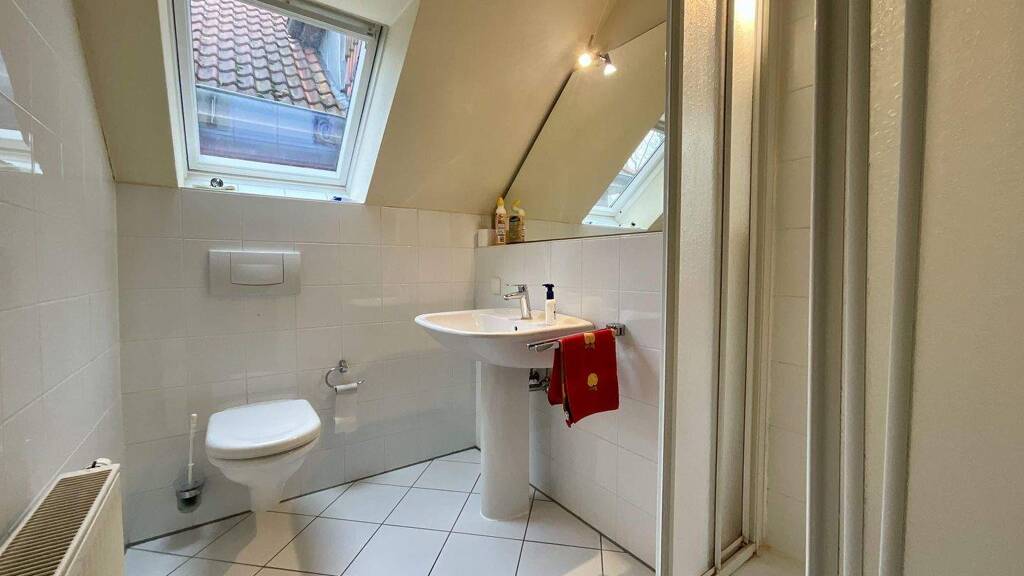Zur Wohnung gehört ein ausgebauter Dachboden als Nutzfläche, erreichbar über eine Wendeltreppe.