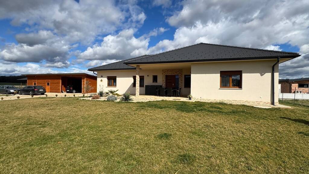 Das Grundstück ist komplett eingefriedet und verfügt über ein elektrisches Einfahrtstor. Neben dem Wohnhaus befindet sich ein 90m² großes Nebengebäude, das aus einem Abstellraum, einer Gartengarage und einer offenen Garage für zwei Autos besteht.