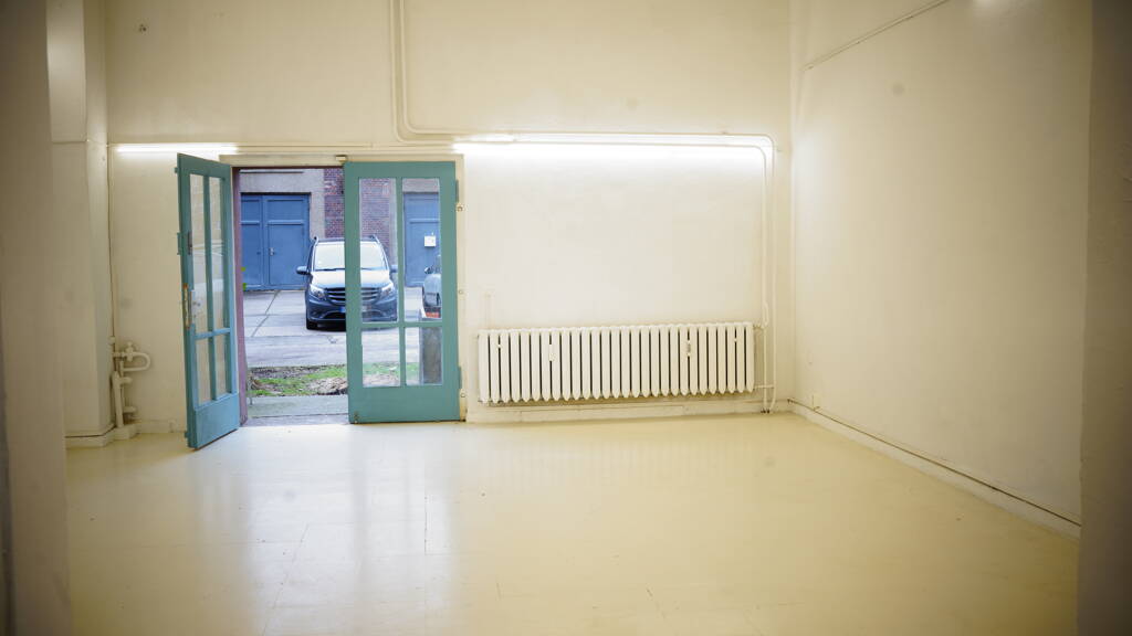 Robuster Bodenbelag: Der strapazierfähige Boden ist pflegeleicht und bestens geeignet für vielseitige Nutzungen – sei es als Atelier, Büro oder Ausstellungsfläche.
