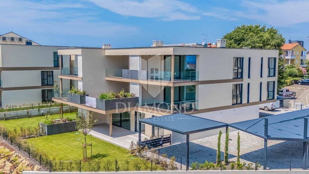Novigrad, Neubau Diese schöne Wohnung mit einer Fläche von 88 m² (76,70 m² + 20,70 m² überdachte Terrasse) bietet ein geräumiges Wohnzimmer, bestehend aus Küche, Esszimmer und gemütlichem Wohnzimmer, und ist somit ein perfekter Ort zum geselligen Beisammensein und Entspannen. Darüber hinaus verfügt die Wohnung über zwei Schlafzimmer mit jeweils eigenem Bad für zusätzliche Privatsphäre und Komfort. Das Wohnzimmer führt zu einer schönen großen überdachten Terrasse mit Sommerküche, ideal, um die frische Luft zu genießen und im Freien zu entspannen. Die Wohnung verfügt außerdem über eine wunderschöne Terrasse von insgesamt 20,70 m2, ein wahres Paradies für alle, die gerne Zeit im Freien verbringen. Zur Wohnung gehören außerdem zwei Parkplätze und zusätzlicher Stauraum, was Komfort und Sicherheit für alle Mieter gewährleistet. Fußbodenheizung, Klimaanlagen in jedem Raum zur Temperaturregulierung und hochwertigste Materialien machen dieses Projekt in jeder Hinsicht zu etwas Besonderem. Dies ist wirklich ein Zuhause, das alles bietet, was Sie für einen komfortablen und stilvollen Lebensstil benötigen.