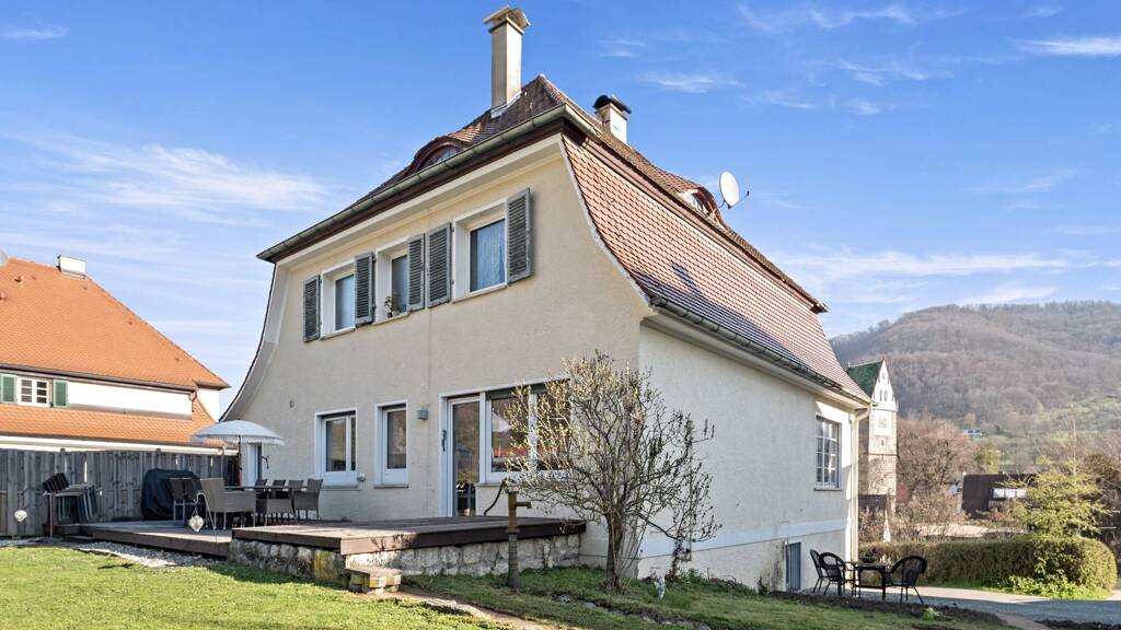 In der reizvollen Gemeinde Lenningen präsentiert sich diese eindrucksvolle, teildenkmalgeschütze Villa als architektonisches Statement mit Geschichte, Charakter und außergewöhnlicher Präsenz.