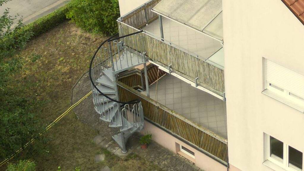 Die großzügige, überdachte Balkonterrasse im Obergeschoss bietet zusätzlichen Wohnkomfort im Freien und ist über eine Stahl-Wendeltreppe direkt mit dem Garten verbunden.