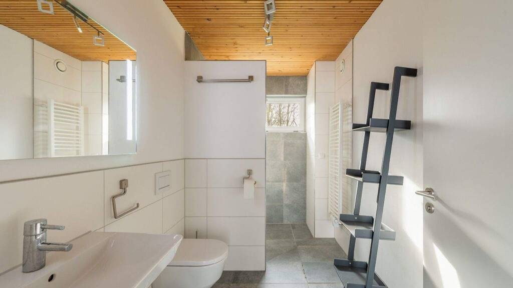 Im Erdgeschoss befinden sich drei separate Einheiten mit jeweils eigenem Eingang. Zwei Einheiten sind als Ein-Zimmer-Apartments ausgeführt, eine Einheit verfügt über zwei Zimmer. Alle Einheiten sind vollständig ausgestattet mit Küchenzeile, Badezimmer und Möblierung. Die Zwei-Zimmer-Einheit verfügt über ein eigenes Bad pro Zimmer während sich die Küche geteilt wird. Zuletzt wurden die Einheiten möbliert auf Zeit vermietet. Ab dem Obergeschoss beginnt der Wohnbereich des Hauses. Hier stehen vier flexibel nutzbare Zimmer zur Verfügung, die sich als Schlaf-, Arbeits- oder Gästezimmer eignen. Ergänzt wird das Geschoss durch ein voll ausgestattetes Badezimmer mit Walk-in-Dusche und Doppelwaschbecken sowie einen Abstellraum. Die Betondeckenoptik verleiht dem Geschoss einen modernen Charakter.