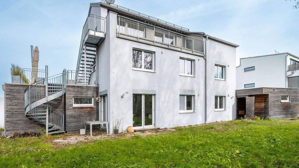 Im Erdgeschoss befinden sich zudem ein Technik- und Heizungsraum sowie weitere Abstellflächen. Zum Haus gehören drei Außenstellplätze, ein Carport und eine Doppelgarage. Der Geräteraum am Carport ist für einen weiteren Ausbau vorbereitet.