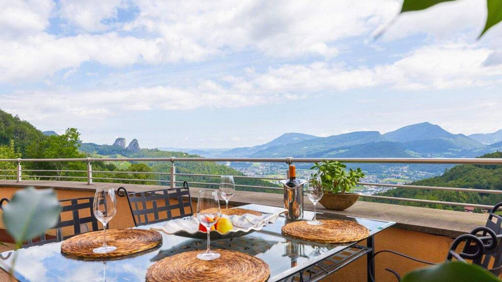 Dieses einzigartige Anwesen befindet sich am Kraftort Bad Dürrnberg bei Salzburg und bietet einen unverbaubaren Panoramablick über das malerische Salzachtal und die umliegenden Berge.