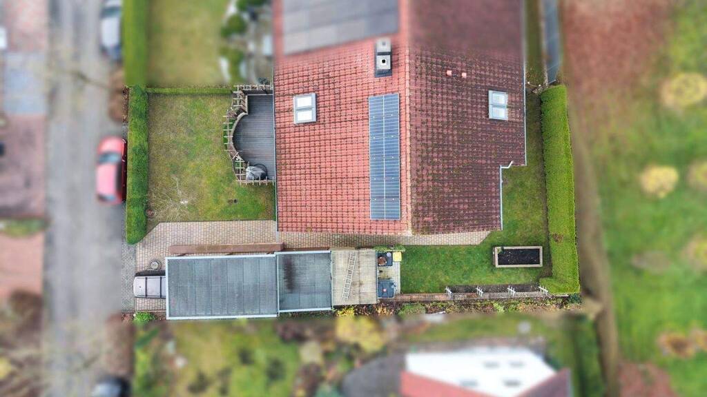 Entlang eines Fußweges, vorbei am Carport mit zusätzlichem Stellplatz und dem Gartenhaus, erreichen Sie den Eingang dieser Liegenschaft. Sobald Sie die Tür öffnen, werden Sie vom beeindruckend guten Pflegezustand und dem ansprechenden Renovierungszustand im Windfang begrüßt, von dem Sie den großen Hauswirtschaftsraum sowie das erste vollwertige Tageslichtbadezimmer erreichen. Dieser Bereich trennt geschickt den Eingangsbereich, mit mehr als genug Platz für Garderobe und Schuhschrank, vom Wohnbereich, nicht nur räumlich, sondern auch energetisch mehr als wertvoll und durchdacht geplant.