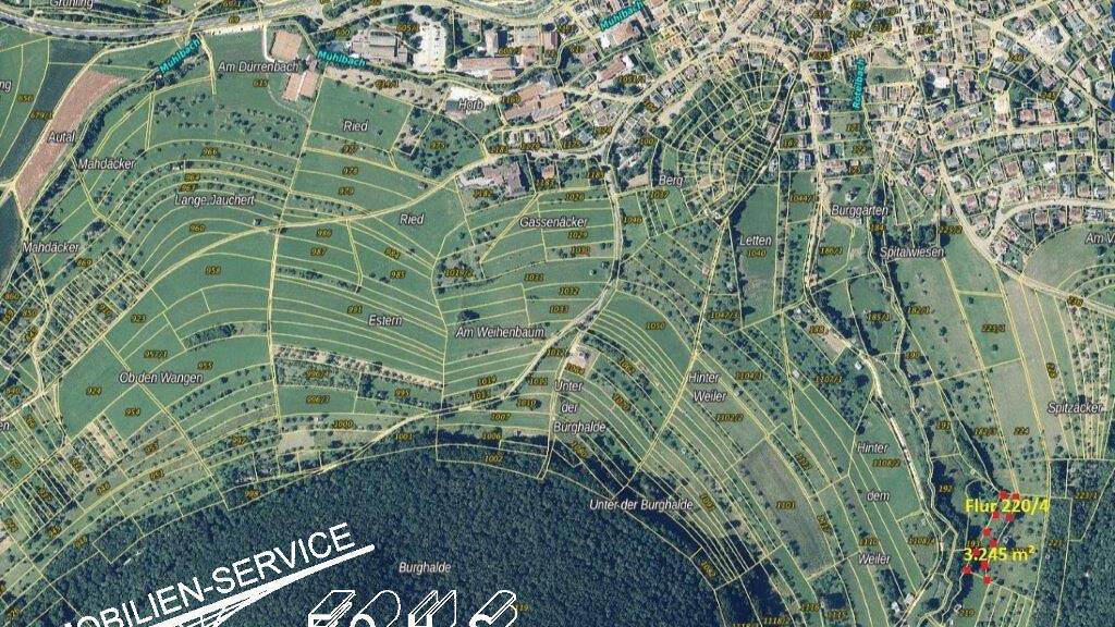 Flur 220/4 =3.245 m² landwirtschaftl. Grundstück(Grünland mit Obstbäumen) in 73337 Bad Überkingen"Hinter dem Weiler"...