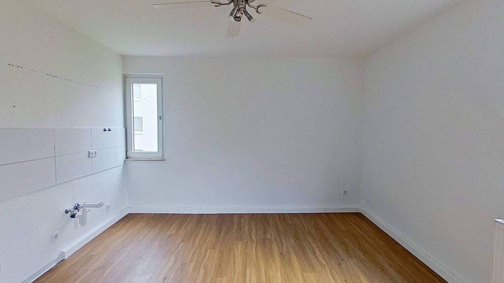 Im großzügigen Küchenbereich befinden sich ein weißer Fliesenspiegel sowie alle notwendigen Anschlüsse für Ihre persönliche Einbauküche. Die Küche verfügt zudem über genügend Platz für eine einladende Essecke. Das Tageslichtbadezimmer ist in grau-weiß gehalten und mit einer Dusche bestückt.