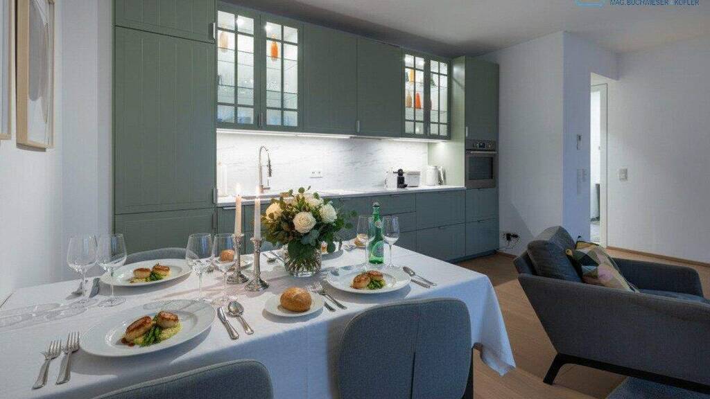 Deckenkühlung, Fußbodenheizung, ausgeklügeltes Smart-Home-System zur Steuerung der Wohnung, Landhausstil-Parketten und helles Feinsteinzeug im sanitären Bereich, moderne und edle Wohnkücheneinrichtung, elektrische Außenjalousien und vieles mehr erwartet Sie genau hier!