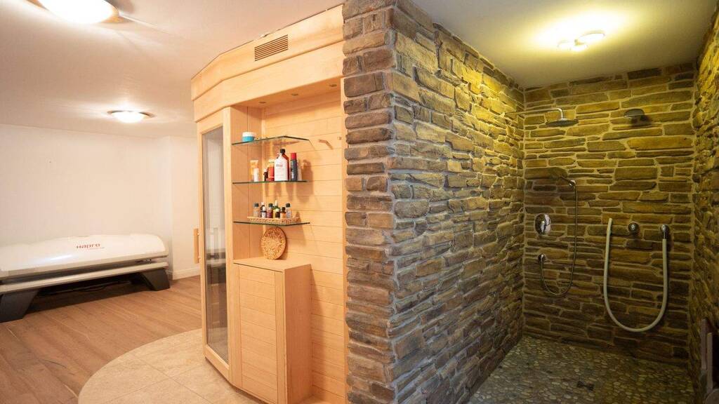 Im Untergeschoss ist ein großzügiger Wellnessbereich mit Sauna vorhanden. Die gesamte Technik des Hauses befindet sich ebenfalls im Untergeschoss. Zwei großzügige Kellerräume bieten reichlich Stauraum. Vom Keller und Garten aus gelangen Sie auch direkt in den unterkellerten Bereich der Garage, welcher ca. 55qm weitere Fläche zum Ausbau bietet. Hier könnten Sie auch ihre eigenen Praxisräume, Büroflächen oder einen Hobbybereich entstehen lassen.