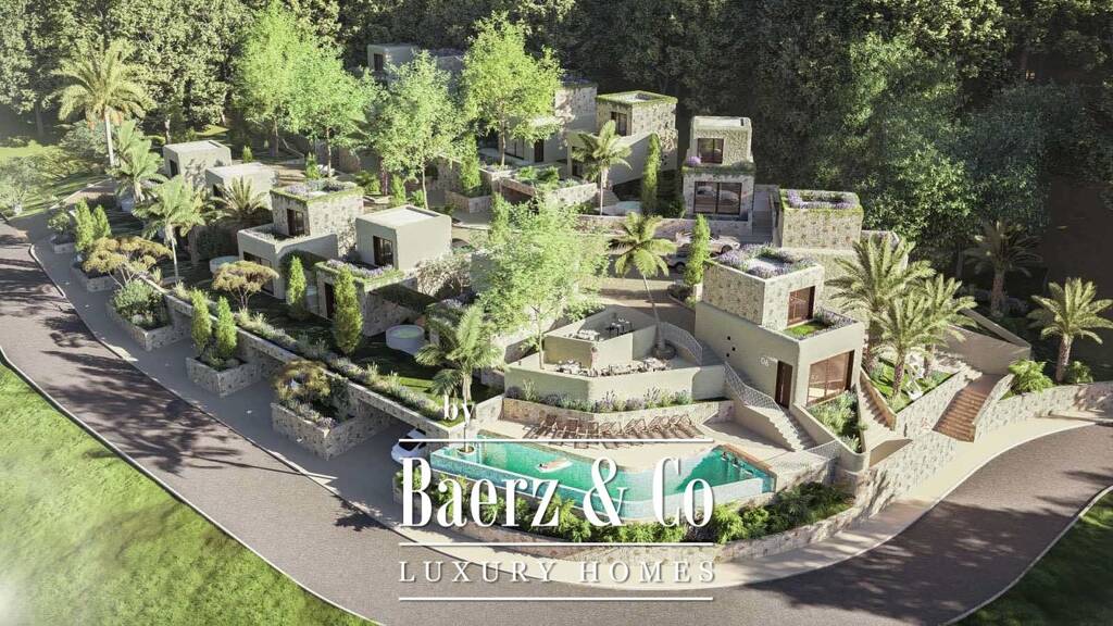 - design: luxury bungalows with private pools, parking spaces and modern interiors.