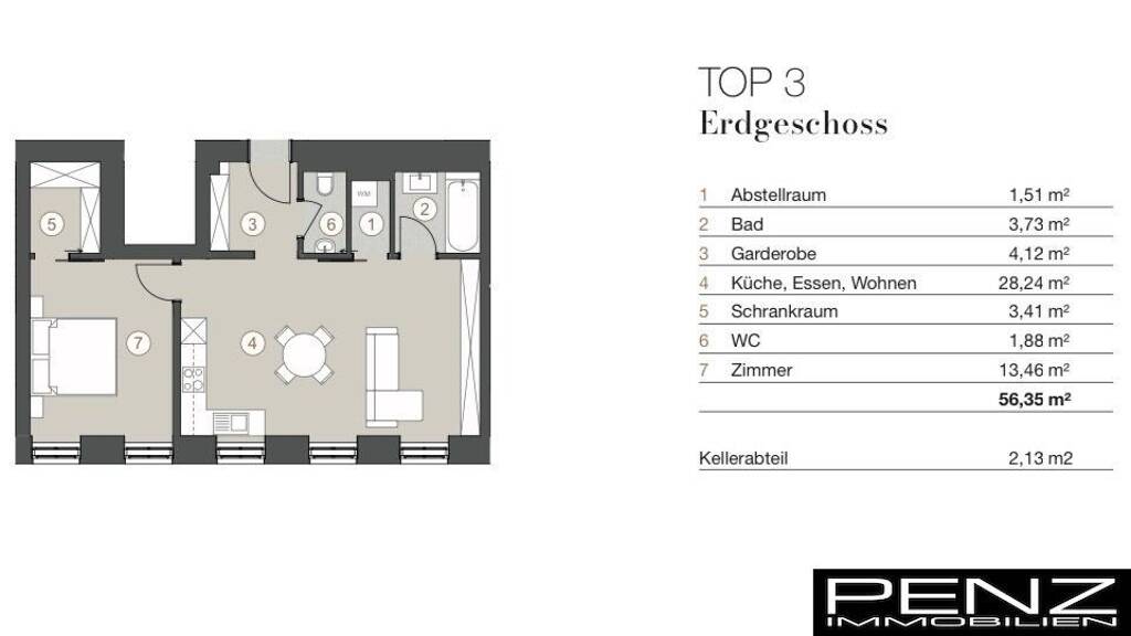 2 Zimmer  •  56,4 m²  •  EG