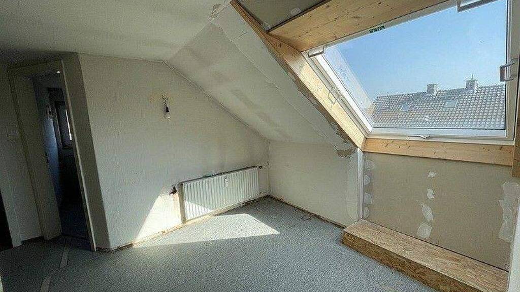 Die Räume im Dachgeschoss können nach eigenen Wünschen gestaltet werden, ob als Kinder-, Gäste- oder Arbeitsbereich. Es sind bereits Wassreleitungen und Heizkörper vorhanden. Insgesamt stehen 96,5 m² zur Verfügung, verteilt auf zwei Etagen.