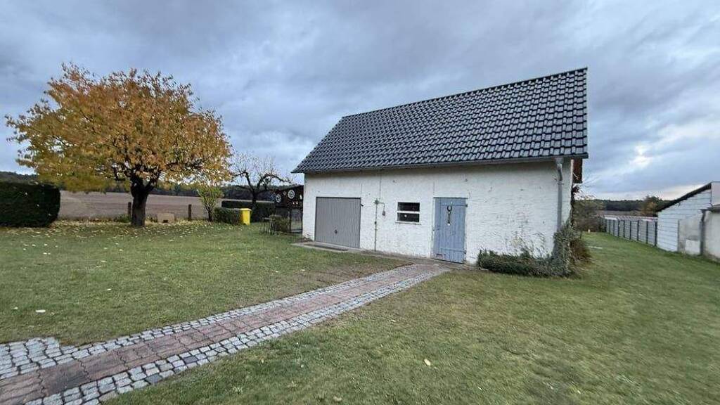 Auf dem Grundstück befindet sich zudem ein schönes Nebengebäude mit Abstellmöglichkeiten. Hier ist Platz für Lagermöglichkeiten, eine kleine Werkstatt, Hobbys oder auch für Kleintierhaltung. Eine Garage ist vorhanden und rundet das Platzangebot ab. Hinter dem Nebengebäude erstreckt sich ein großer Gartenbereich mit Obstbäumen und viel Fläche zur Bewirtschaftung. Dieser Garten bietet hervorragendes Potenzial, um mit etwas Liebe und Gestaltung einen idyllischen Wohlfühlort im Grünen zu schaffen. Von hier aus bietet sich ein weiter und toller Blick über Wiesen und Felder ...