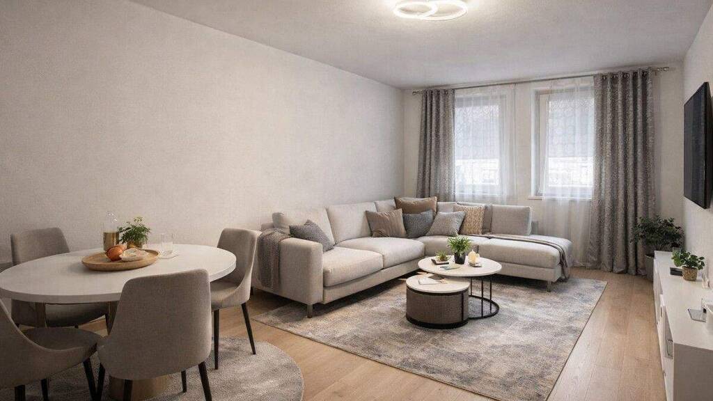 Die Wohnung wurde 1994 umfassend modernisiert und befindet sich in einem gepflegten Zustand, auch wenn ein geringer Renovierungsbedarf besteht. Zur Ausstattung gehören Kunststoff-Wärmeschutzfenster.