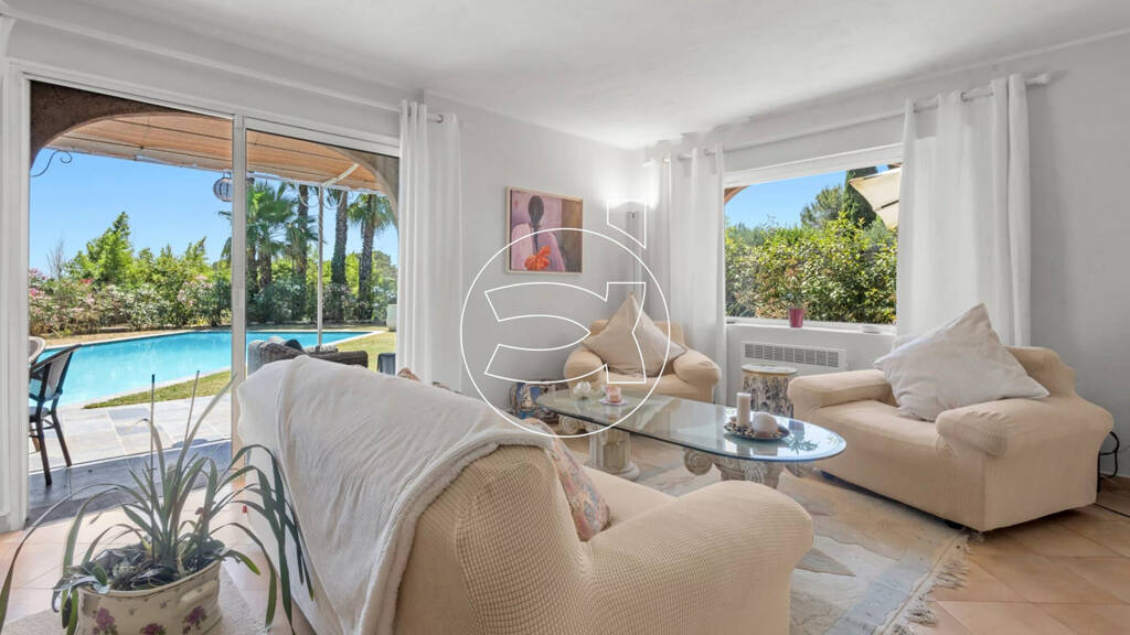 In unmittelbarer Nähe zu Bushaltestellen, internationalen Schulen, Einkaufsmöglichkeiten, Stränden und einigen der schönsten Golfplätze der Côte d'Azur bietet diese seltene Immobilie eine außergewöhnliche Lebensqualität - ruhig gelegen und dennoch zentrumsnah.