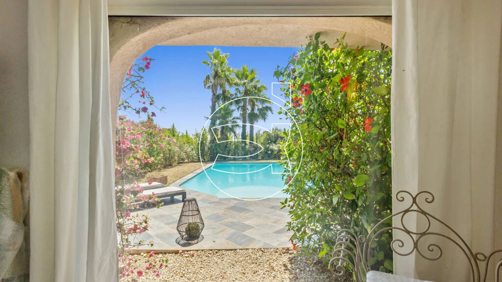 DIE HAUPTVILLA Diese elegante, zweigeschossige Villa in erhöhter Lage bietet dank großer Fensterfronten viel Helligkeit und einen freien Blick auf die umliegenden Hügel, den Naturpark La Brague und sogar einen kleinen Meerblick. Der Außenbereich besticht mit einem nach Süden ausgerichteten Pool sowie mehreren sonnigen und schattigen Terrassen - ideal zum Entspannen oder zum Empfangen von Gästen.