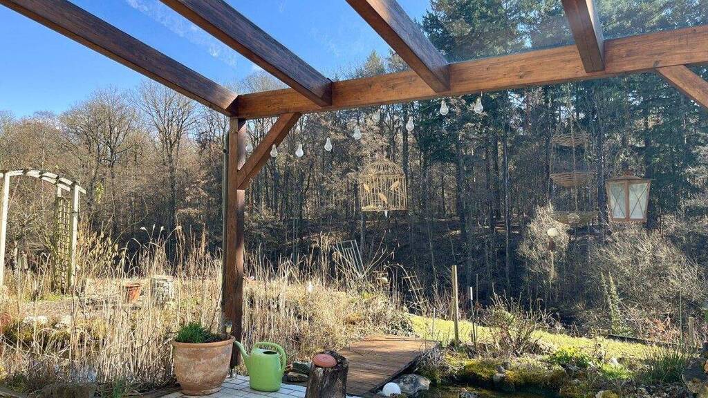 Ein echtes Highlight ist der helle Wintergarten, der zum Entspannen einlädt und selbst an kühleren Tagen einen charmanten Rückzugsort bietet. Der großzügige Wohn- und Essbereich mit Zugang zur Terrasse schafft eine einladende Atmosphäre für gemeinsame Stunden mit Familie und Freunden. Ein Ofen im Wohnzimmer sowie Holzdecken unterstreichen den warmen, wohnlichen Charakter der Wohnung und sorgen für ein besonders behagliches Wohngefühl.