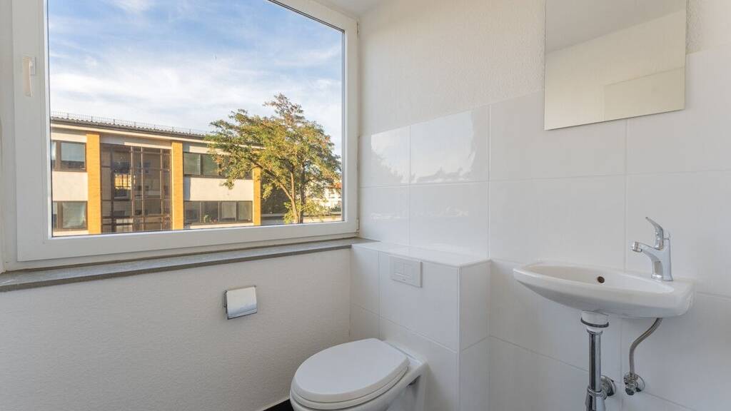 Sie liegt im dritten Obergeschoss eines Hauses aus dem Baujahr 1964, in dem sich insgesamt acht Wohneinheiten befinden. Hier finden Sie auf ca. 83 Quadratmetern Wohnfläche insgesamt drei Zimmer. Der Flur der Wohnung ist angenehm großzügig geschnitten, sodass der Eingangsbereich recht offen erscheint. Linker Hand, in Richtung Straße gelegen, befinden sich ein WC und die geflieste Küche, am Ende des Flures zuletzt noch ein Schlafzimmer. Rechter Hand, also von der Straße abgewandt und exakt nach Süden ausgerichtet, finden Sie ein weiteres Zimmer sowie das große und helle Wohnzimmer mit Panoramafenster und Zugang zum hübschen Balkon. Von hier aus blicken Sie in die Hinterhöfe der Friedrich-Ebert-Straße und weiter bis zum Habichtswald - dies ist vor allem im Sommer sicher ein toller Ort, um den Tag in Ruhe ausklingen zu lassen. Das vor Kopf liegende Badezimmer mit Badewanne wurde, ebenso wie das WC, bereits geschmackvoll saniert. Abgesehen von den Nassräumen und der Küche wurden alle anderen Räume mit Laminat ausgelegt.