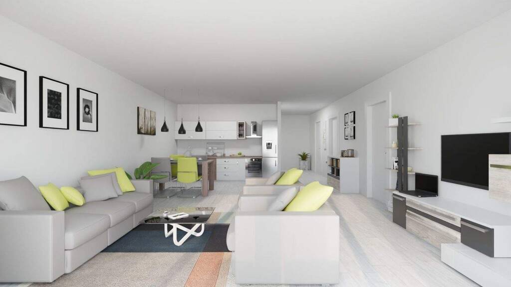HINWEIS: Die Visualisierungen stellen eine beispielhafte Gestaltung der Wohnräume dar. Die Immobilie wird ohne Möblierung und ohne Kücheneinrichtung angeboten.