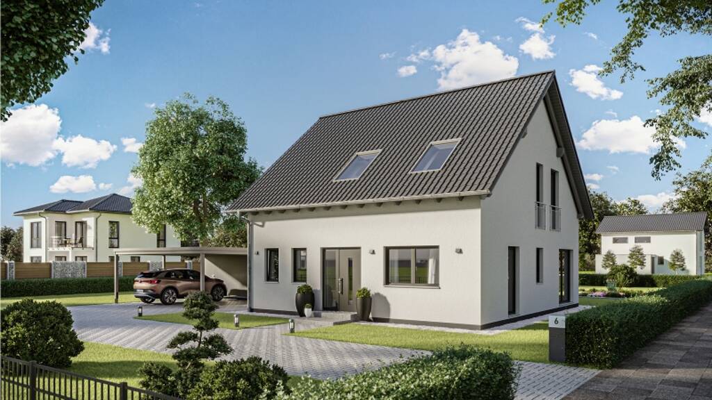 Der gezeigte Preis versteht sich inklusive Grundstück und exklusive der Baunebenkosten.