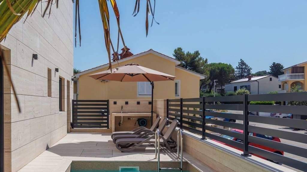 Dieses wunderschöne Luxusapartment befindet sich in einer neu erbauten Villa mit insgesamt drei Wohnungen, die sich jeweils auf einer Etage erstrecken. Die Villa liegt nur 80 Meter vom Meer und dem berühmten Strand von Cuklicevo entfernt. Das geschmackvoll eingerichtete Apartment im Erdgeschoss verfügt über drei Schlafzimmer, drei Badezimmer, eine Küche, ein Wohnzimmer sowie eine 26 m2 große Terrasse, die zum Verweilen im Sommer wie im Winter einlädt. Dank der besonderen Lage des Grundstücks hat jedes Apartment einen eigenen Pool im privaten Garten. Die Apartments sind mit hochwertiger Einbautechnik ausgestattet, die der Bauherr bereits seit Jahren für seine Projekte nutzt. Fußbodenheizung, Klimaanlage, Mitsubishi-Klimaanlagen und in jedem Zimmer integrierte Innengeräte sind nur einige der Merkmale der erstklassigen Ausstattung. Die Außenfassade besteht aus großen Schiebewänden. Die Böden sind mit hochwertigen Porzellanfliesen belegt. Die Wohnung verfügt über abgehängte Decken mit integrierter Beleuchtung sowie einbruchsichere Eingangstüren des renommierten italienischen Herstellers Diere. Die Zimmertür ist aus Nussbaumholz gefertigt und stammt ebenfalls von Diere. Die Eingangstür zur Villa stammt vom bekannten Hersteller Inoterm. Die Badezimmer sind mit einer Kombination aus Holz und Keramik ausgestattet. Die Außenfassade besteht aus hochwertigem, luftdurchlässigem römischem Travertin. Die Nähe zu allen Annehmlichkeiten, ein hoher Baustandard, edle Ausstattung, luxuriös möblierte Wohnungen und eine besonders interessante Architektur zeichnen diese wunderschöne Villa aus.