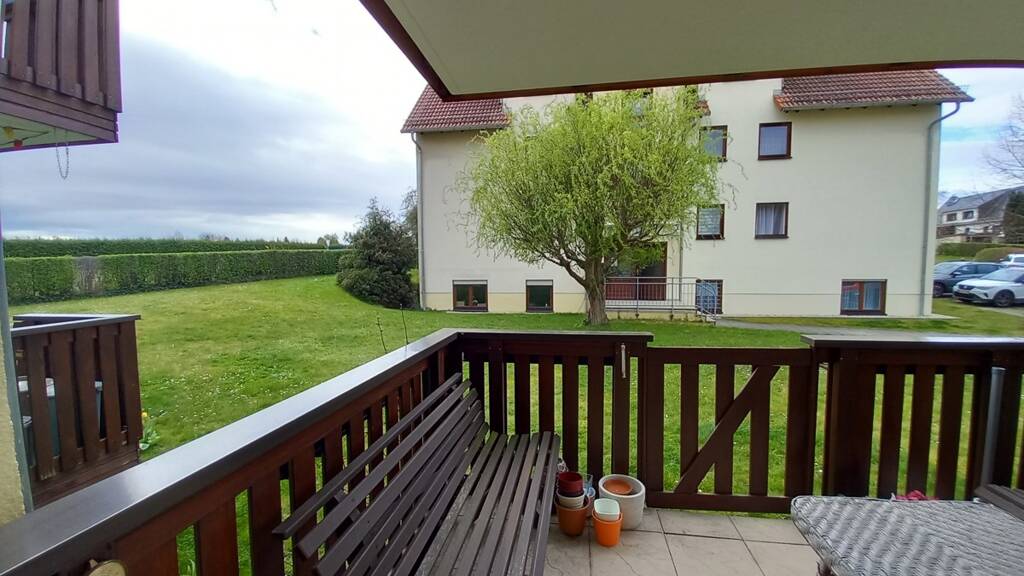 Die 1997 erbaute Wohnanlage liegt am grünen Stadtrand von Meerane in einer Eigenheimsiedlung. Die Stadt Meerane mit ihren ca. 15.000 Einwohnern liegt zentral im Wirtschaftsdreieck Leipzig - Chemnitz (ca. 40KM) - Zwickau (ca. 15KM) direkt an der Bundesautobahn A4 und der B93. Einst Bestandteil der Textilregion Crimmitschau-Meerane-Glauchau und ein traditioneller Automobilstandort, hat sich Meerane in den vergangenen Jahren zu einem modernen, leistungs- und wettbewerbsfähigen Wirtschaftsstandort entwickelt, geprägt von traditionellen und modernen Industriezweigen. Meerane ist Standort vieler Zulieferbetriebe der Automobilindustrie. Der VW-Konzern fertigt unweit, am Standort Mosel, Elektro-Fahrzeuge der Marken VW, AUDI und SEAT, sowie Karosserien der Marken BENTLEY und LAMBORGHINI.