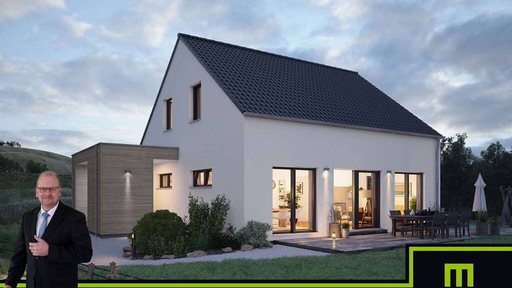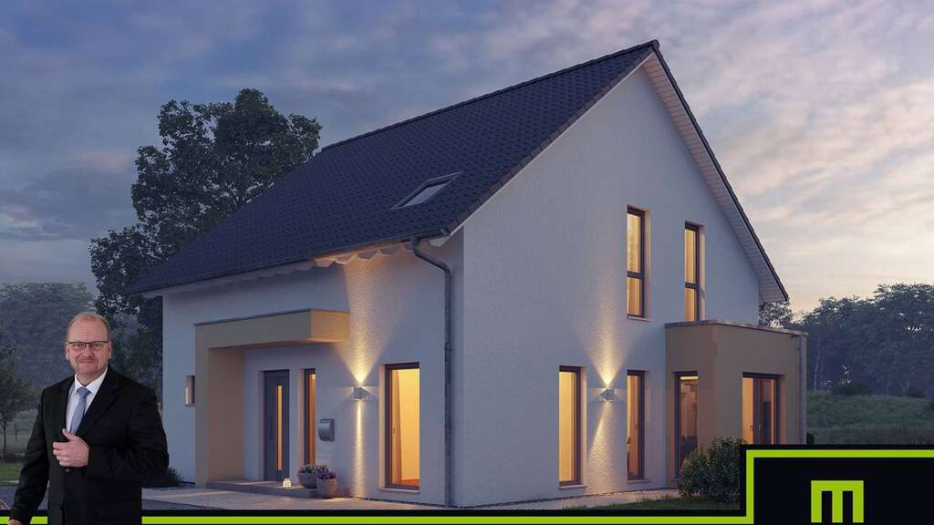 IM ANGEBOT ENTHALTEN: - Dieses tolle projektierte Energiesparhaus (KFW55 optional 40/40+) auf Bodenplatte - inkl. F R E I R A U M - Deckenhöhe 2,75m - inkl. Baugrunduntersuchung - inkl. Architektenleistung - inkl. hochwertiges Pfettendach - inkl. selbst reinigende Dachziegel - inkl. Dachrinnen und Fallrohr aus Titanzink - inkl. Außenputz - inkl. Moderne Haustür in massiver Ausführung mit Edelstahlgriff und Mehrfach Sicherheitsverriegelung - inkl. Dreifachverglaste Wärmeschutzfenster - inkl. Aluminium-Rollläden - inkl. Aussenfensterbänke - inkl. Material Luft-Wasser-Wärmepumpe inkl. Fußbodenheizung - inkl. Material kontrollierter Be- und Entlüftung mit Wärmerückgewinnung - inkl. Material für Sanitärrohinstallation - inkl. Elektropaket inkl. Montage - inkl. Treppe in verschiedenen Design-Varianten inkl. Montage - inkl. Klima-Plus Wände - inkl. Blower Door Test - inkl. Bauleistungsversicherung - inkl. Bauherren-Haftpflichtversicherung - inkl. Wohngebäudeversicherung - inkl. Feuer-Rohbauversicherung - Keller gegen Aufpreis möglich