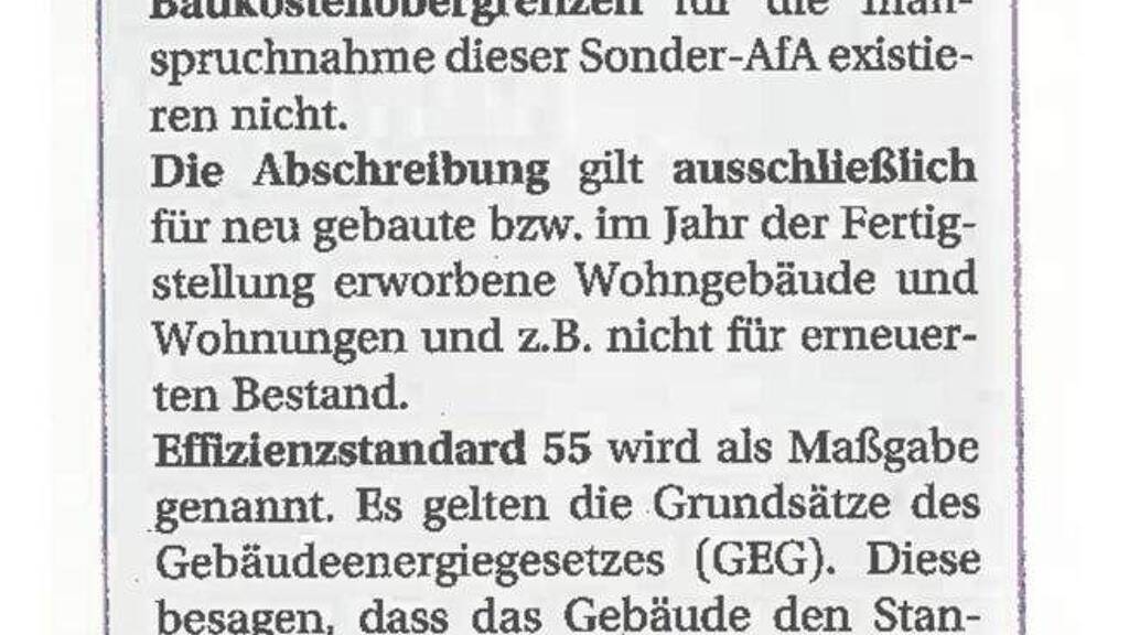 Sofern das neu entstehende Gebäude vermietet wird, besteht die Möglichkeit durch die zwischenzeitlich beschlossene Änderung der Gebäudeabschreibung die neuen Wohnungen mit jährlich 5 % bezogen auf den jeweiligen Buchwert/Restwert abzuschreiben. Hierdurch werden hohe Steuervorteile erzielt.