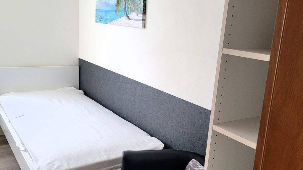 Dieses moderne Apartment ist ausschließlich für Studenten oder BERUFSTÄTIGE als WOCHENENDHEIMFAHRER vorgesehen. Es ist NICHT zur Dauernutzung geeignet. Es handelt sich hierbei um eine 2er-WG (männlich). Das Apartment befindet sich im Dachgeschoss eines 3-Familienhauses. Das Apartment sowie die gemeinschaftliche Küche und die Diele sind komplett neu renoviert. Das Zimmer und die Diele sind mit neuem Vinylboden ausgestattet. Das Apartment ist mit einem Kleiderschrank, einem neuen Bett sowie einem Tisch, Stuhl und Sessel ausgestattet und vermittelt Wohlfühlcharakter. Das Dachgeschoss hat einen separaten Eingang. Beide Zimmer teilen sich eine kleine Küche mit Waschmaschine, Kühlschrank und 2 Cerankochfelder sowie ein großes Bad. Das Bad hat Wanne und Dusche sowie ein Fenster. Die Waschmaschine steht zur gemeinschaftlichen Nutzung zur Verfügung. Die Nebenkosten inklusiv Stromkosten sind eine Pauschale.