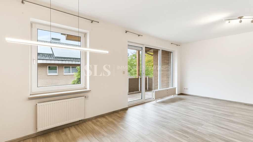 Der freundliche Eingangsbereich führt direkt in den großzügigen Wohn- und Essbereich, der dank großer Fensterflächen mit Licht durchflutet wird und einen offenen, einladenden Eindruck hinterlässt. Der überdachte Balkon lädt dazu ein, den Feierabend entspannt zu genießen und den Blick ins grüne Umfeld schweifen zu lassen.
