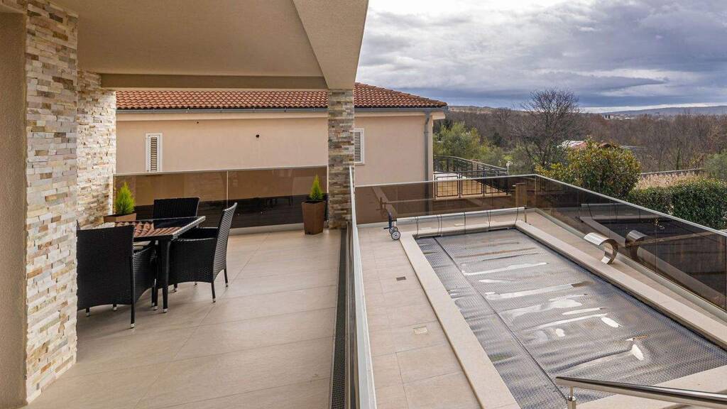 In einem ruhigen Teil von Malinska, unweit des Meeres, befindet sich eine luxuriöse, moderne Villa in erstklassiger Bauweise und Ausstattung, die ganzjährig bewohnbar ist und höchsten Komfort bietet.