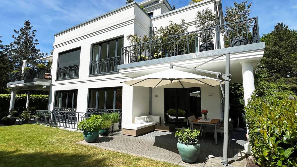 Das weiße Mehrfamilienhaus wurde in klassischer Villenarchitektur errichtet. Die zum Verkauf stehende Wohnung befindet sich in einem sehr gepflegten Zustand. Der besondere Charakter der Wohnung wird durch moderne, hochwertige Ausstattung sowie die großzügigen Räume mit 2,75 m Deckenhöhen geprägt.