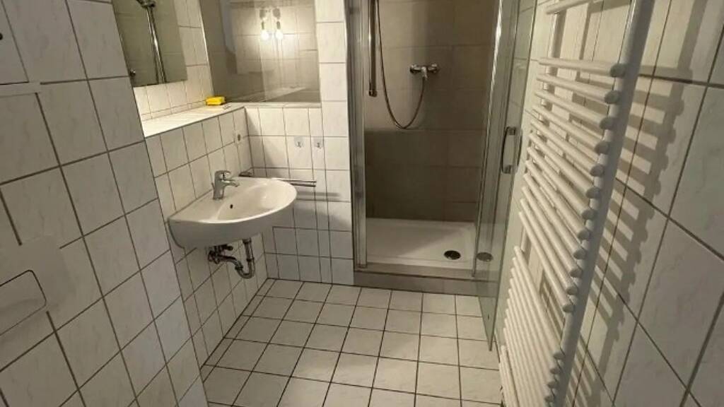 Der Wohn- und Schlafbereich sowie der Flur und auch der Abstellraum sind mit Parkett ausgestattet, das Badezimmer ist gefliest und zur Ausstattung gehören eine großzügig komfortable Dusche, ein WC sowie ein Waschtisch. Ein Anschluss für die Waschmaschine steht Ihnen im Keller zur Verfügung.