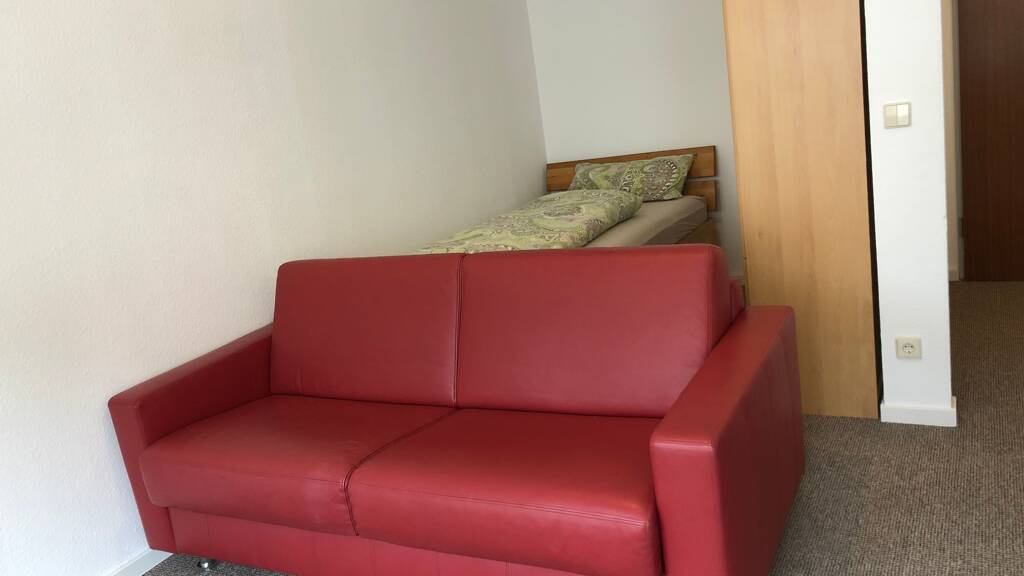 Gepflegte 1-Zimmerwohnung in ruhigem Apartmenthaus Nähe Fachhochschule, Goldschmiedeschule, Wildpark. 5 Min. bis zur A8, 50 m zur Bushaltestelle. Erstbesteigung nach Renovierung. Alle Geschäfte des täglichen Bedarfs sind ca. 1,5 km entfernt, zum Stadtzentrum ca. 1 km. Die Wohnung ist mit einer Einbauküche mit Kochfeld, Backofen, Spülmaschine und Kühlschrank ausgestattet. Im Schlafbereich finden Sie ein bequemes Bett 1x2m sowie einen großzügigen Kleiderschrank. Der lichtdurchflutete Wohnbereich mit der großen Ledercouch lädt zum fernsehen ein oder einfach mal die Seele baumeln lassen und den Blick nach draußen schweifen lassen. Die Couch kann mit einem Griff auch zu einem Doppelbett umgebaut werden. Neben der Küche befindet sich der Essplatz. Im Sommer können Sie die warmen Tage und Abende auch auf Ihrer privaten Terrasse genießen, Sitzmöbel sind vorhanden. Selbstverständlich finden Sie auch eine Dusche mit Toilette, Waschtisch und eigener Waschmaschine. Im abgeschlossenen Fahrradkeller können Sie bedenkenlos Ihr Fahrrad deponieren, für Ihr Auto steht Ihnen ein Tiefgaragenplatz zur Verfügung.