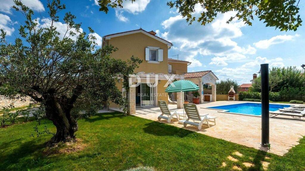 In einer ruhigen Wohngegend in der Nähe von Sveti Lovrec steht ein komfortables Haus mit Swimmingpool zum Verkauf.