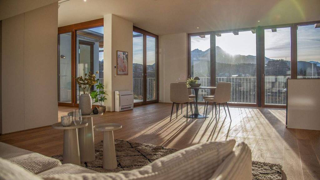 Die einzigartige Penthouse-Wohnung thront über dem Dorf - mit überhohen Decken, eindrucksvoller Raumwirkung und einer Offenheit, die Freiheit spürbar macht.