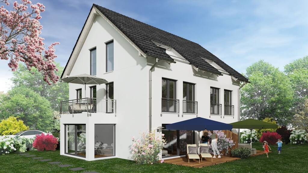 Die Idee Auf diesem Grundstück haben wir eine kleine Anlage geplant. In ruhiger Straßenlage gelegen, erhalten Sie moderne und funktionelle Häuser. Diese bestechen nicht nur durch die Lage, sondern, sondern sie passen sich gut in die Umgebung ein. Die Häuser sind zweckmäßig und gemütlich gestaltet. Sie entstehen in massiver und energetisch sinnvoller effizienter KfW Bauweise. Diese Objekte wurden inkl. des Kellers, dem Erdgeschoss, dem Obergeschoss und dem Studio geplant. Als Heizung haben wir eine moderne Luft-Wärme-Pumpe inkl. Fußbodenheizung vorgesehen. Zum Leistungsumfang gehören die hochwertigen Ausstattungen.