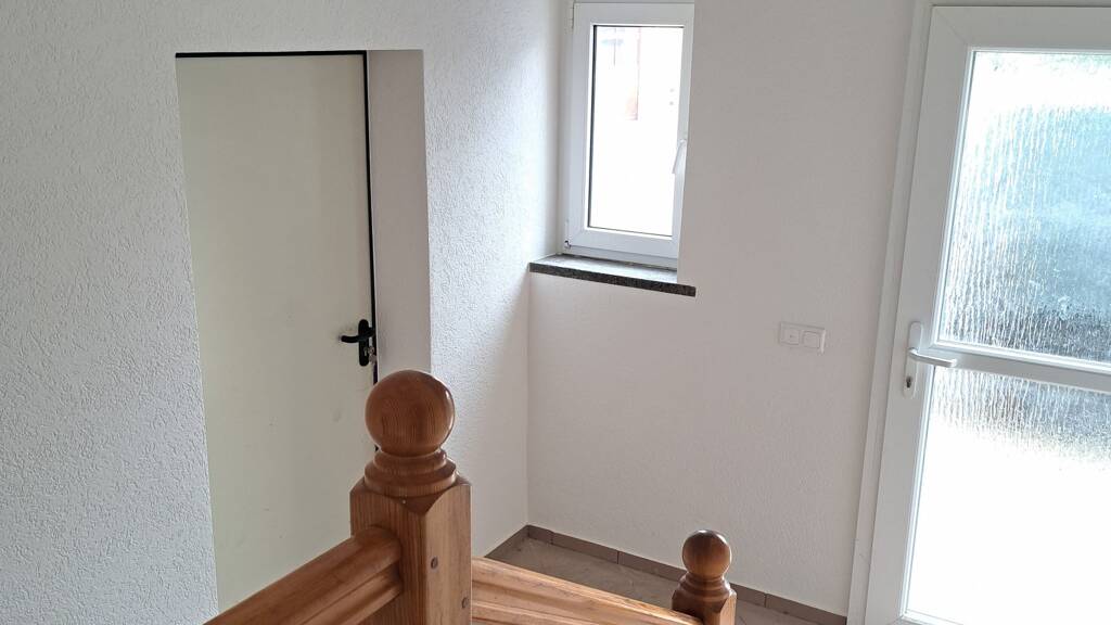 Sie gelangen über einen separaten Hauseingang in den Hausflur von welchem Sie rechterhand die Garage und linkerhand über die Treppe die Wohnung als auch den dazugehörigen Hauswirtschaftsraum inkl. Waschmaschinenanschluss erreichen können. Die Wohnung verfügt über zwei identisch große Zimmer, die als Wohn-, und Schlafzimmer genutzt werden können. Sowie ein kleineres Kinderzimmer oder Büro. Die Küche bildet einen separaten Raum mit genügend Platz für eine Küchenzeile und einen Esstisch. Auf Wunsch kann ein Fließenspiegel angebracht werden. Das Bad mit Fenster verfügt über eine barrierefreie Dusche. In der Garage können ein Wohnwagen/Wohnmobil oder ggf. ein bis zwei PKW's Platz finden. Die Einfahrtshöhe beträgt 2,85 m.
