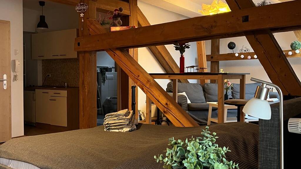 Die großzügige, durch Balken abgetrennte, komplett eingerichtete Einraumwohnung befindet sich direkt im Herzen Stralsunds. Gemütlich eingerichtet ist es ein Ort zum Wohlfühlen für Jedermann. Die Wohnung befindet sich im zweiten Stock und verfügt über eine gut ausgestattete Küchennische und ein großes, helles Badezimmer mit Dusche und Fenster. An dem Schreibtisch kann man bequem seinen Computerarbeitsplatz einrichten. Waschmaschine und Trockner befinden sich im Keller. Für den Fernseh-/ Internetanschluss und die Stromkosten fällt eine Pauschale von 50,00€/Monat an, dies ist in den Nebenkosten inkludiert.