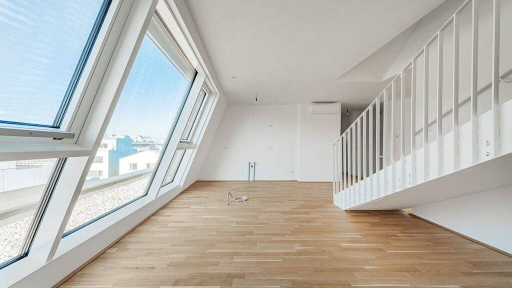 Großflächige Dachfenster erhellen die Räume mit viel natürlichem Licht.