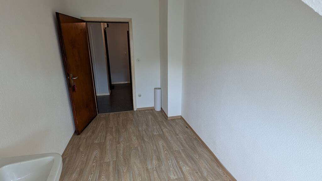 Im Flur sowie in den beiden weiteren Zimmern ist Laminatboden verlegt, der pflegeleicht und robust ist. Der Teppichboden ist nur in einem der Schlafzimmer vorhanden, was für eine gemütliche Atmosphäre sorgt. Zudem befindet sich ein Einbaukleiderschrank im Schlafzimmer, der für zusätzlichen Stauraum sorgt.