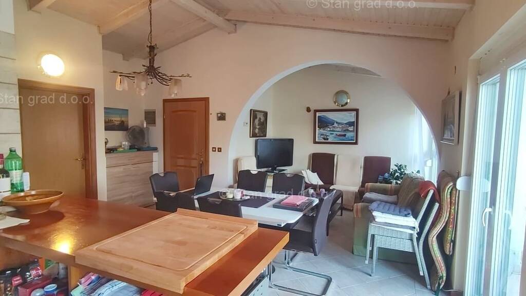 Innerhalb der traditionell attraktiven kroatischen Adria-Tourismusregion, der Insel Krk, bieten wir eine gepflegte und gepflegte Wohnung für einen touristischen Aufenthalt oder Aufenthalt an. Diese Wohnung befindet sich in einer ausgezeichneten und selten verfügbaren Lage, ganz in der Nähe des Meeres und nur wenige Gehminuten vom Zentrum von Malinska und den wichtigsten Annehmlichkeiten des Lebens entfernt. Je nach Objektart handelt es sich um eine mittelgroße eingeschossige Wohnung. Innerhalb des wunderschön gebauten Gebäudes befindet sich die Wohnung im 2. Stock. Die Wohnung umfasst eine Gesamtfläche von ca. 64 m2. Dieser Bereich umfasst ein Wohnzimmer und eine Küche, 2 Schlafzimmer, ein Badezimmer und eine überdachte Terrasse. Der Innenbereich der Immobilie ist besonders gepflegt und komplett mit den notwendigen technischen Geräten und hochwertigen Möbeln ausgestattet. Es darf nicht außer Acht gelassen werden, dass der Eigentümer der Wohnung alle gemeinsamen Teile und Räume der Immobilie nutzen kann. Dem Eigentümer der Wohnung steht ein Parkplatz zur Verfügung. Zusätzlich zu den zuvor genannten Eigenschaften verfügt die Wohnung über eine hervorragende Lage und Ausrichtung, die ihren Bewohnern einen wunderbaren freien Blick auf das Meer bietet. Diese Wohnung ist Eigentum einer natürlichen Person, daher ist der Käufer verpflichtet, bei der Eigentumsübertragung auf seinen Namen eine Umsatzsteuer in Höhe von 3 % zu zahlen. Der Eigentümer der Immobilie garantiert die Ordnungsmäßigkeit der entsprechenden Eigentumsdokumente und die Möglichkeit eines schnellen Eigentumsübergangs der Wohnung auf den Käufer. Kontaktieren Sie uns und wir präsentieren Ihnen gerne diese Immobilie. Das Verkaufsteam der Agentur Stan Grad Immobilien unterstützt den Käufer dieser Immobilie gerne dabei, das Eigentum an der Immobilie in das Grundbuch zu übertragen und Rechnungen für Strom, Wasser und Müllabfuhr auf seinen Namen zu übertragen.