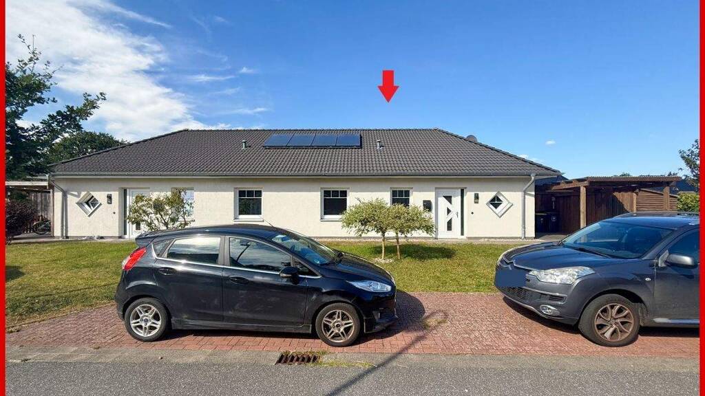 Die Ausstattung entspricht dem Baujahr 2014. Modernisierungsmaßnahmen sind hier nicht notwendig. Das Haus ist sofort zum Einzug bereit. - Das Dach wurde mit einer Betonsteinpfanne gedeckt. Eine Solarthermieanlage sorgt für eine unabhängige Energieversorgung zur Warmwassererzeugung. - Beheizt wird das Haus über eine Gasbrennwerttherme, die beide Einheiten versorgt. - Die Kunststofffenster sind 3-fach verglast. Die eingearbeiteten Sprossen schaffen ein gemütliches Wohnambiente. - Der ca. 27 m² große, offene Wohn-, Ess- und Küchenbereich sorgt für ein kommunikatives Miteinander. - Das zeitlos gestaltete Badezimmer ist mit einer ebenerdigen Dusche ausgestattet. - Die Bodenbeläge sind allergikerfreundlich und variieren zwischen Fliesen und PVC-Designerplanke.