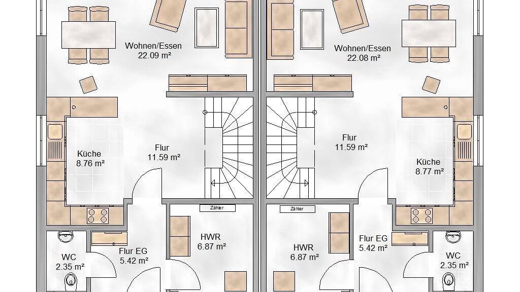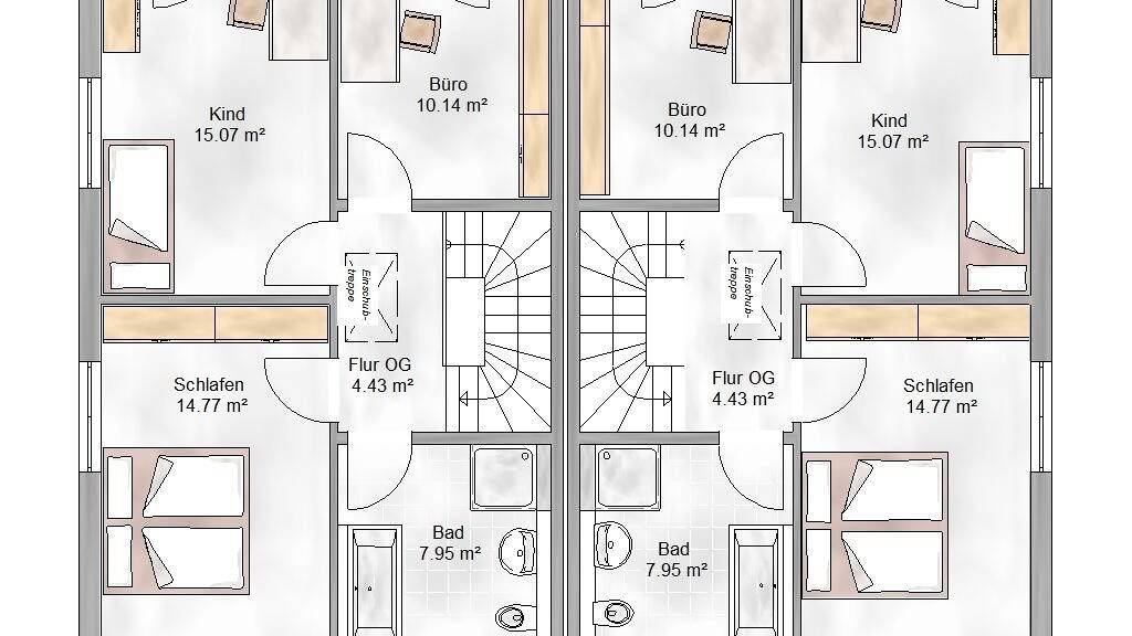 Auf diesem Grundstück planen wir ein Doppelhaus, also zwei Doppelhaushälften mit unserem Haus Graz mit jeweils 107qm Wohnfläche.
