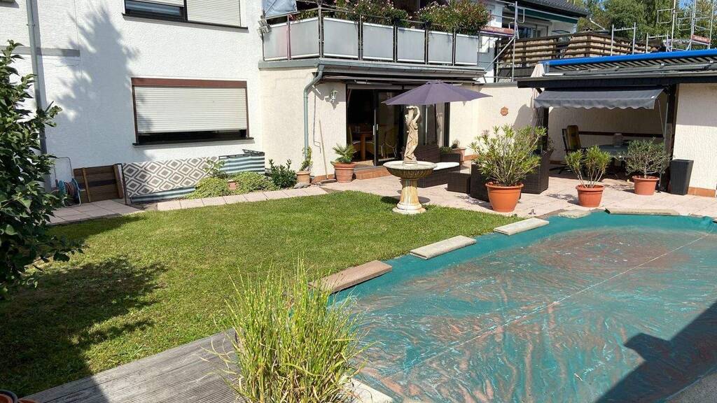 Diese Erdgeschosswohnung aus dem Jahr 1978 besticht durch ihre großzügige Wohnfläche von ca. 100 m² und befindet sich in einem gepflegten Gebäude mit nur einer Etage. Zur Immobilie gehören ein eigener Parkplatz sowie eine Garage. Der große Garten mit Swimming-Pool und Gartenhäuschen steht den Bewohnern zur alleinigen Nutzung zur Verfügung. Des Weiteren verfügt die Wohnung über eine Zentralheizung, eine Terrasse und einen Keller.