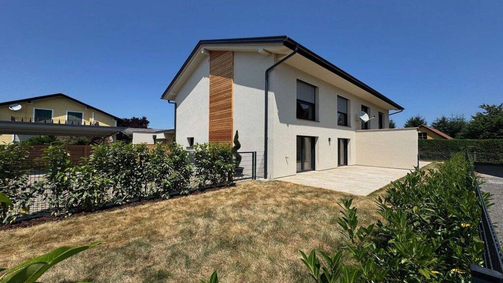 Ergänzt wird das Raumangebot durch einen praktischen Kellerersatzraum, der zusätzlichen Stauraum schafft. Die private Grünfläche von ca. 70m² ist vollständig eingezäunt und liebevoll mit Kirschlorbeer bepflanzt, ein Rückzugsort mit Privatsphäre und hohem Erholungswert. Für Ihre Fahrzeuge stehen ein überdachter Carport sowie ein zusätzlicher freier KFZ-Abstellplatz zur Verfügung. Auch technisch lässt die Immobilie keine Wünsche offen, eine moderne Luftwärmepumpe in Kombination mit Fußbodenheizung sorgt für energieeffizientes und angenehmes Raumklima. Kunststoff-Alu-Fenster mit elektrischer Beschattung, Parkettböden sowie eine bereits installierte Klimaanlage runden das hochwertige Ausstattungspaket ab. Diese attraktive Immobilie verbindet modernes Wohnen mit hoher Lebensqualität in einer zentralen Lage von Leibnitz. Überzeugen Sie sich selbst bei einer Besichtigung vor Ort! Für genaue Informationen stehen wir Ihnen nach einer schriftlichen Anfrage mit Ihren persönlichen Daten gerne zur Verfügung.