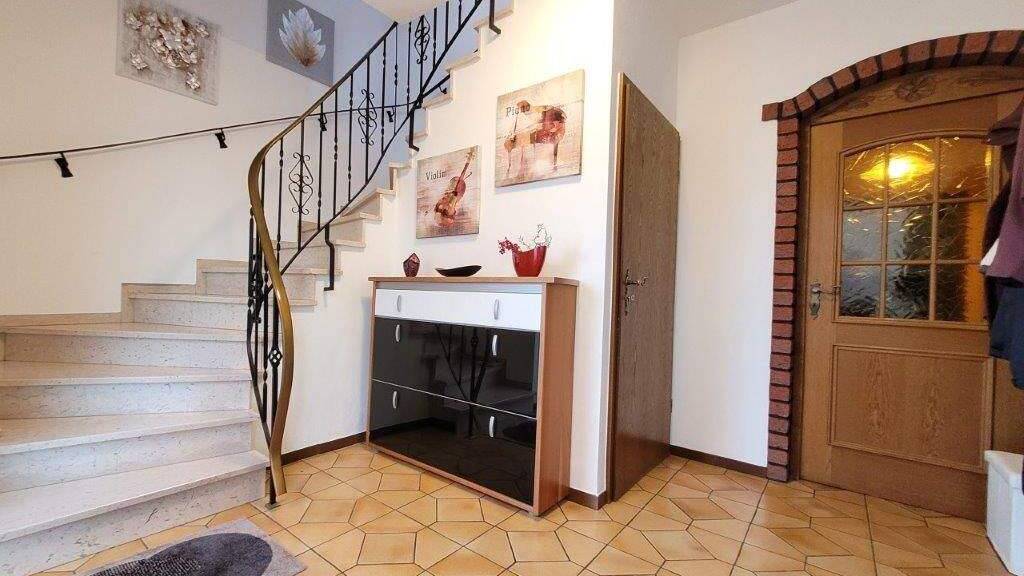 Über das wohnliche, helle Treppenhaus mit Marmorstufen sind die beiden Wohnungen und der Spitzboden erreichbar. Die geräumigen Flächen vor den Wohnungstüren in Erd- und Obergeschoss bieten Platz für Garderoben.